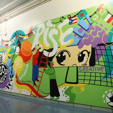 - Large-scale murals, branded feature walls, and creative backdrops for businesses and venues